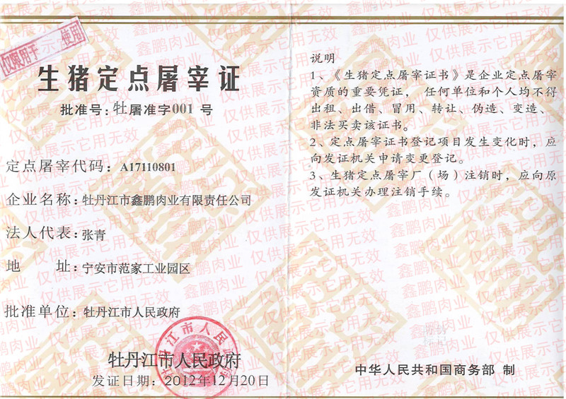 牡丹江市鑫鵬肉業(yè)有限責(zé)任公司